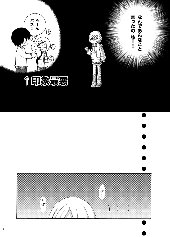 ゲーム中、デートで印象最悪選択肢を選んだ時、帰り道に男の子から電話がかかってくるんですけど、こっちが印象悪い返事返したのに、向こうが謝ってくれるので「なんでやー!!」ってなって描いたものでした。